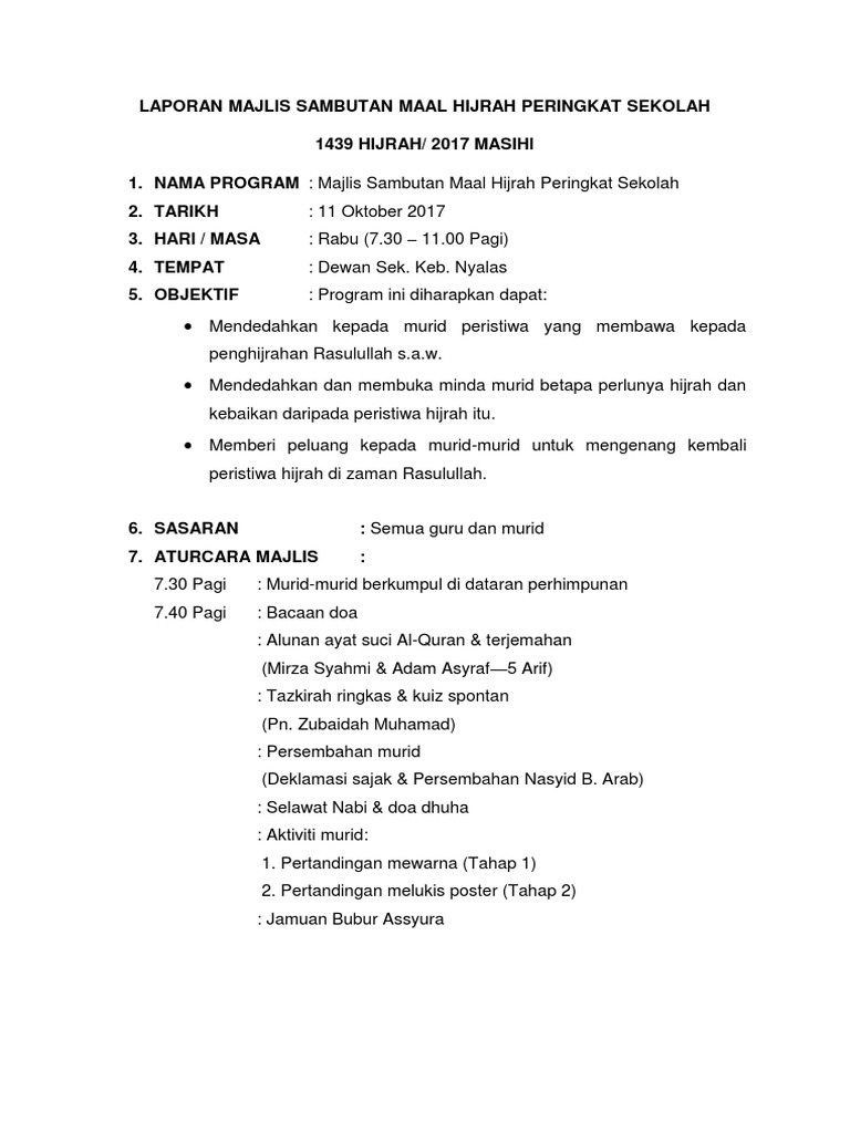 Laporan Majlis Sambutan Maal Hijrah Peringkat Sekolah Pdf