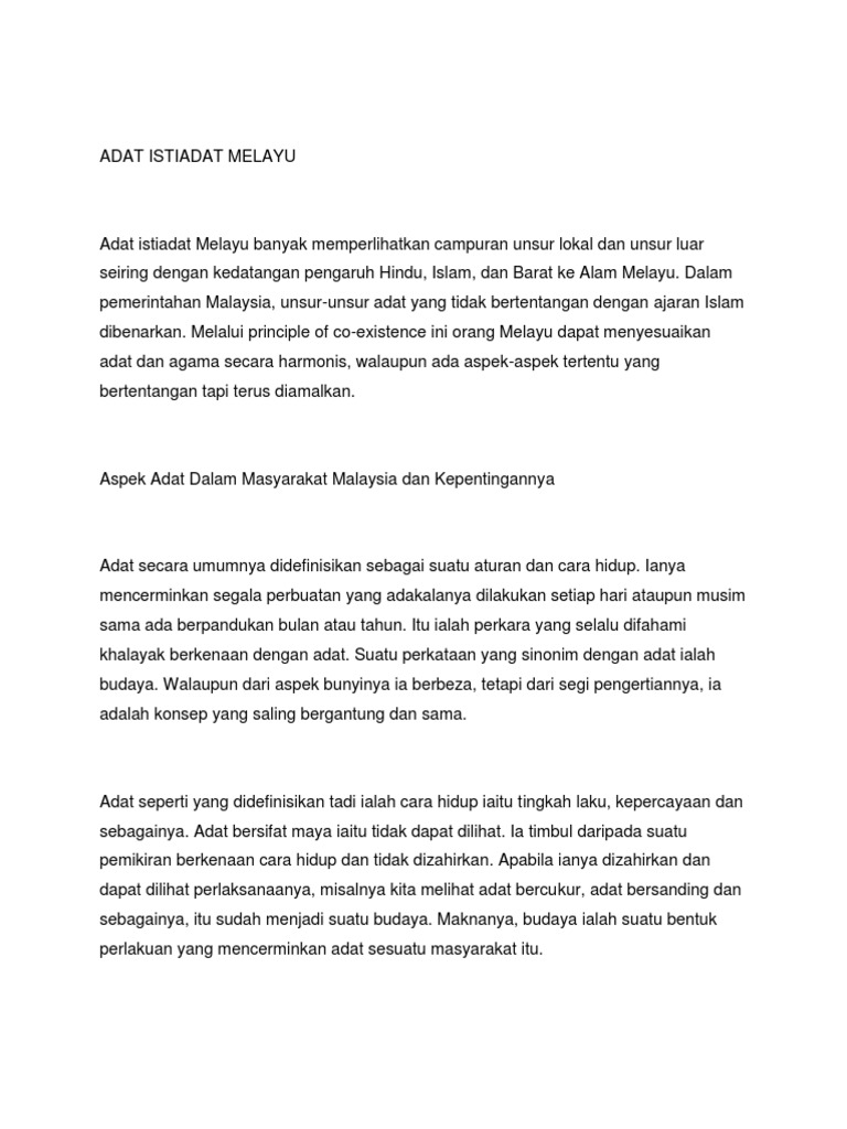 A short summary of this paper. Up to 3 cash back MAKSUD ADAT ISTIADAT Adat istiadat sebahagian adat yang mengatur segala upacara dan kegiatan suci yang perlu menerima penghormatan awam. Adat sebeginilah yang perlu ditinggalkan jika ia.